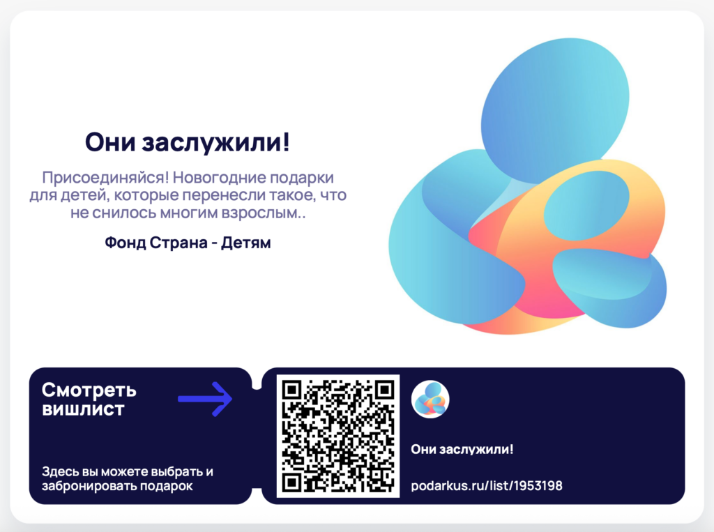 Вы можете стать их Дедом Морозом. Выберите и оплатите подарок в вишлисте — сервис автоматически доставит его ребёнку. Или просто поддержите акцию любой суммой — мы сами оформим и передадим подарок. Подарите тем, кто боролся за свою жизнь, кусочек настоящего детства.